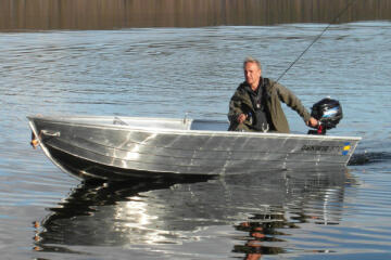 Ett planande skrov gör att båten inte gräver ner sig i sjön och att den tål betydligt större motoreffekt. Med en 2,5 hk motor eller en elmotor har du en perfekt fritidsbåt för mindre och lugnare vattendrag. Tack vare den låga vikten och skrovformen planar normalt båten med en 5 hk utombordare. Kraftigt skrov i 1,5 mm marinaluminium med profilering och förstärkningar gör den till en tålig fritidsbåt.