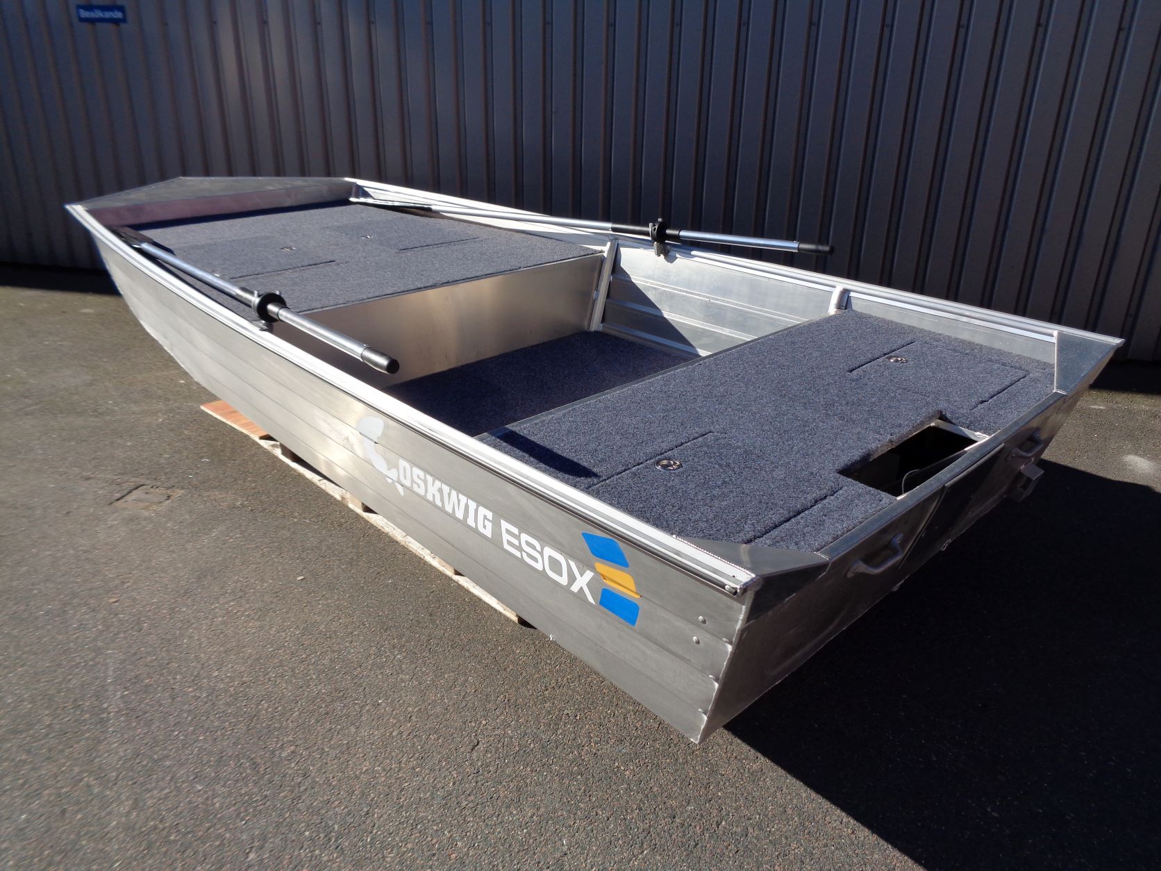 Oskwig Esox är en stor, bred och rejäl fiskebåt för den inbitne fiskaren. Oskwig Esox är olackerad med kastdäck dåde fram och bak. Båda är liksom golvet klädda med tålig marinmatta. Fyra rejäla stuvfack, två i fördäcket och två i akterdäcket ger dig utrymme för din fiskeutrustning. Relativt låga fribord gör också båten lättfiskad. Det triangulära fördäcket gör montaget av frontmonterad trollingmotor enkelt.