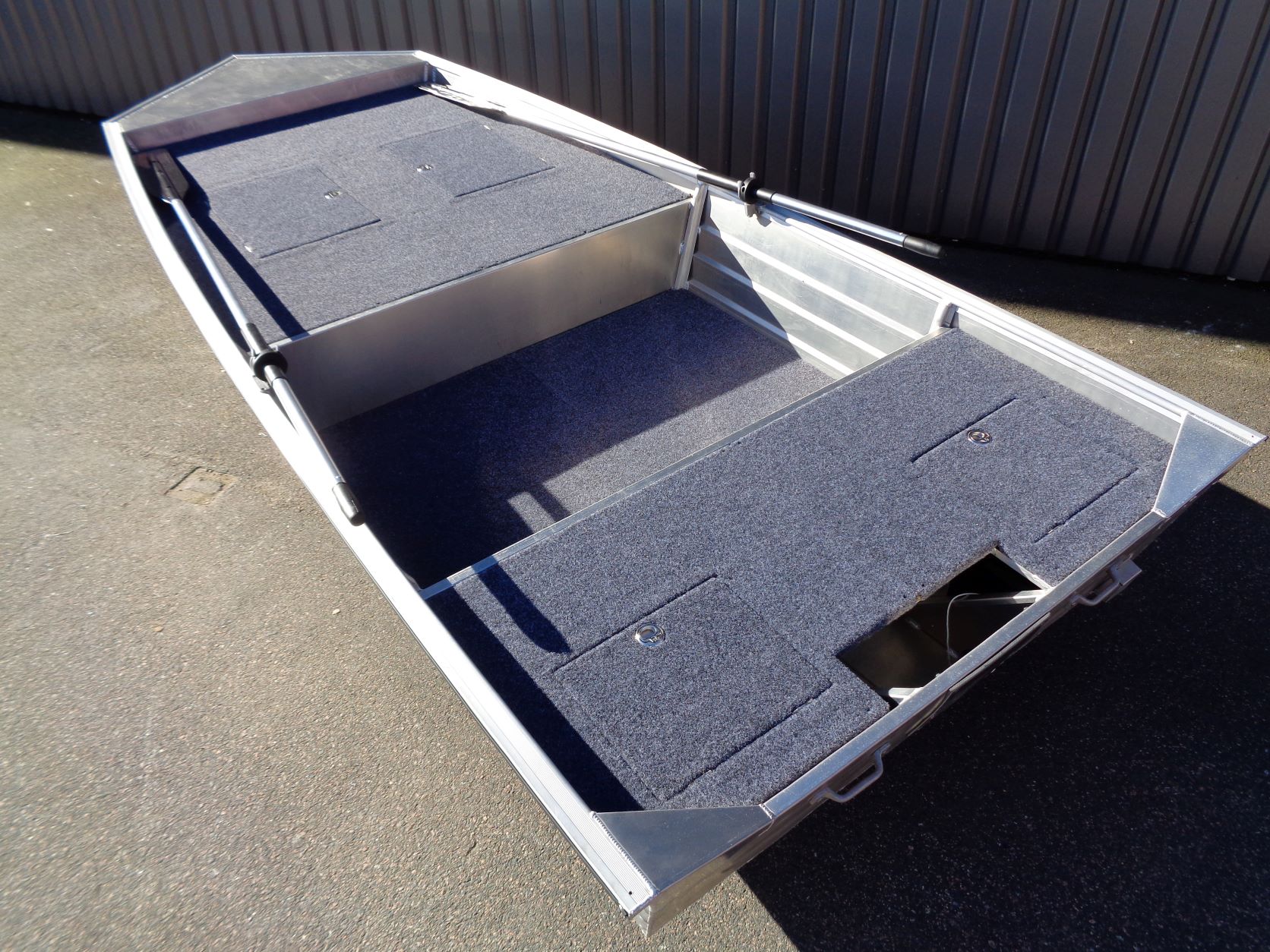 Ett brett skrov med liten bottenvinkel gör båten otroligt stabil och grundgående. Båten är även mycket lättdriven så den planar fint med en 10 hk motor. Den breda akterspegeln är utformad för att ge plats åt motor, trolling motor, ekolodsgivare m.m.