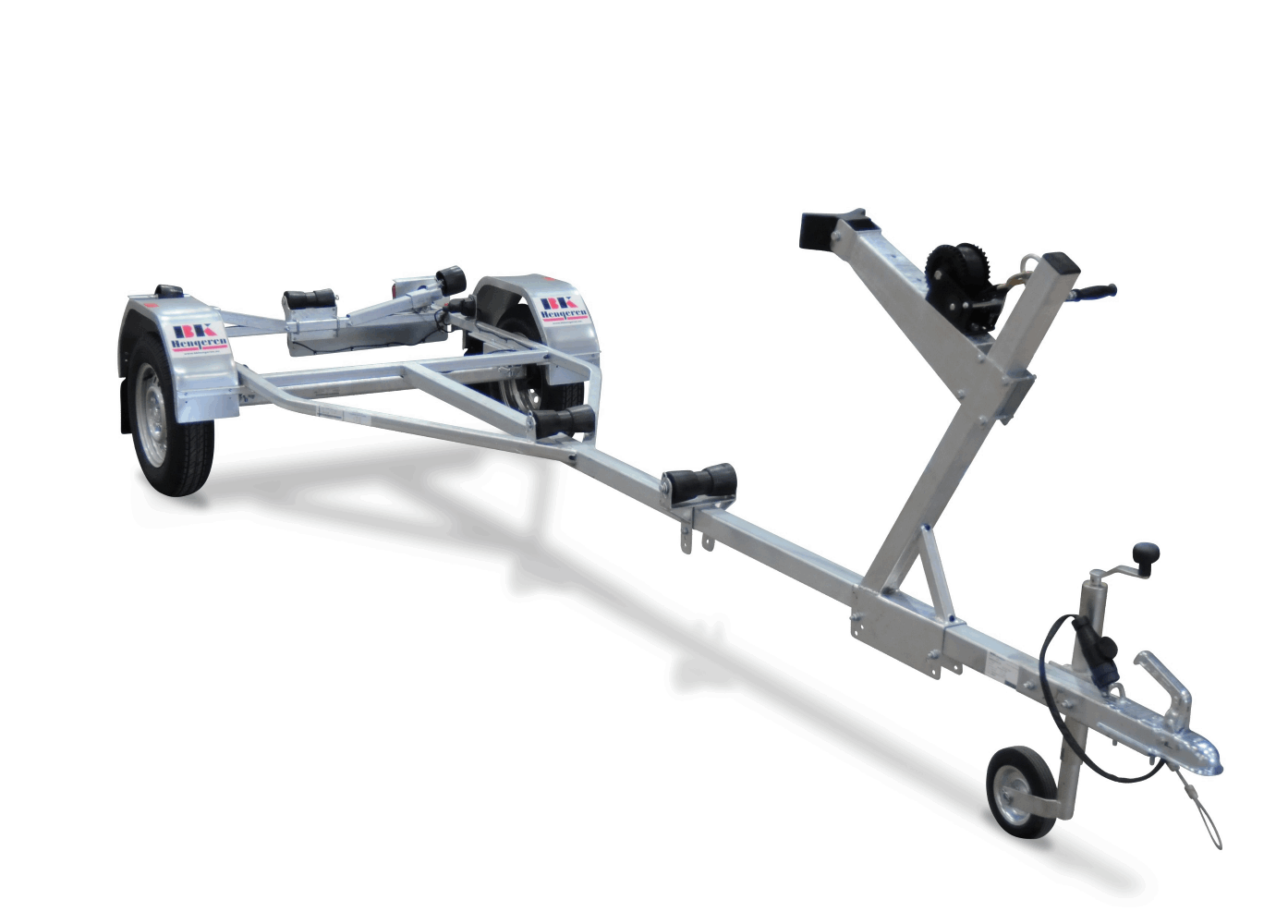 Prisvärd båt trailer med manuellt justerbara sidostöd. Värmevävd och varmförzinkad ram. Kraftfulla stålskärmar. Hanger passar också många typer av små RIB.